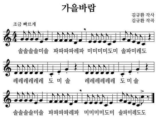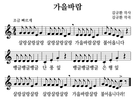 가을바람 동요노래 동영상, 가사, 악보, 계이름