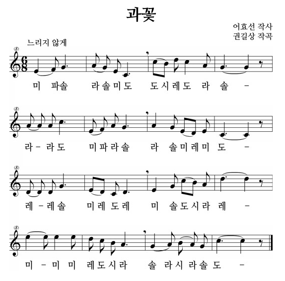 과꽃 동요노래 동영상, 가사, 악보, 계이름