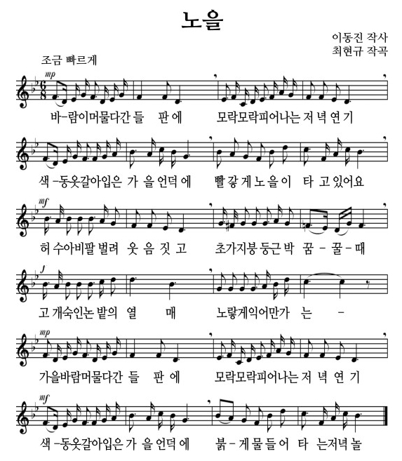 2. 색동옷 갈아 입은 가을 언덕에 붉게 물들어 타는 저녁놀