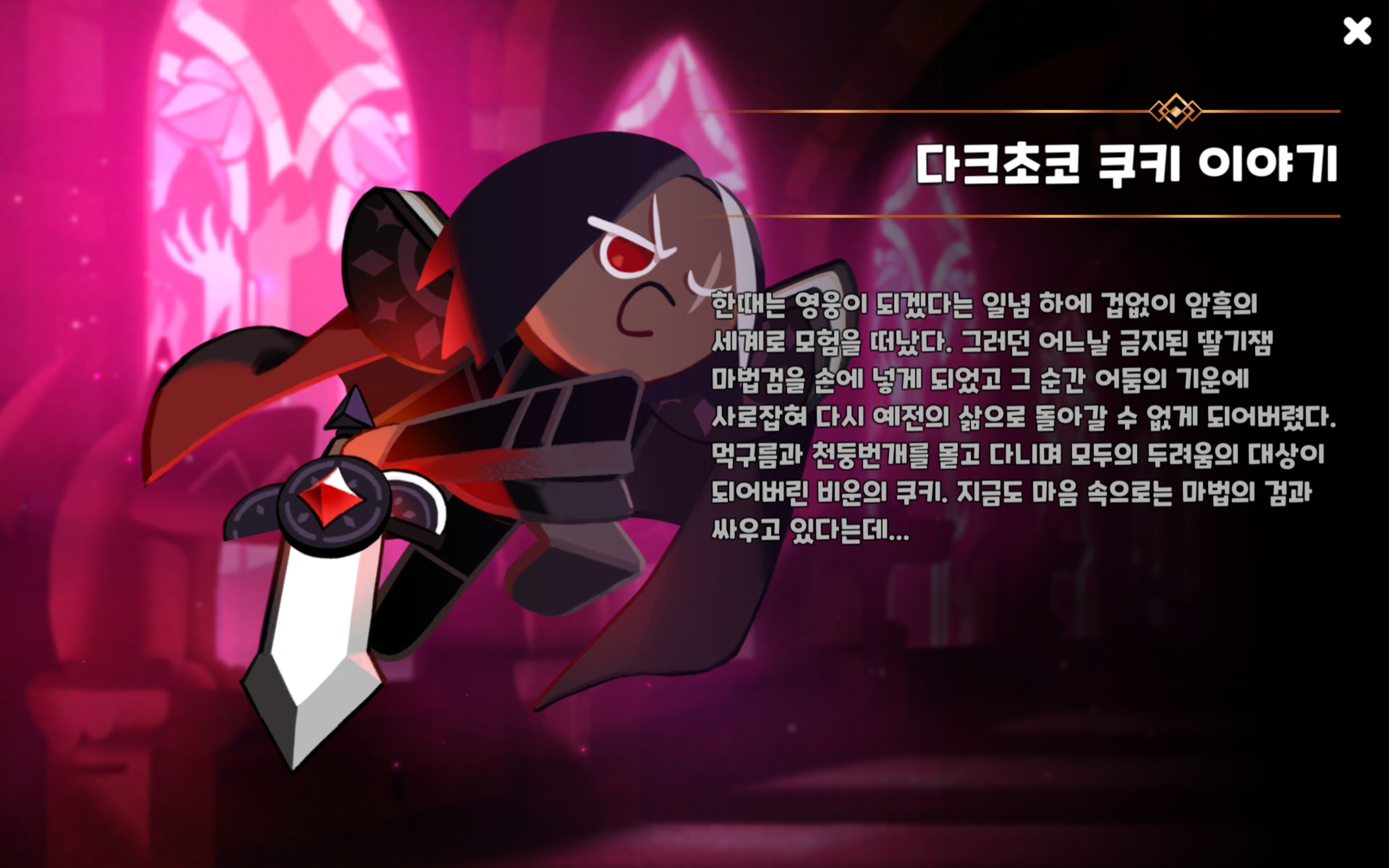 그러던 어느날 금지된 딸기냄 마법검을 손에 넣게 되었고 그 순간 어둠의 기운에 사로잡혀 다시 예전의 삶으로 돌아갈 수 없게 되어버렸다.