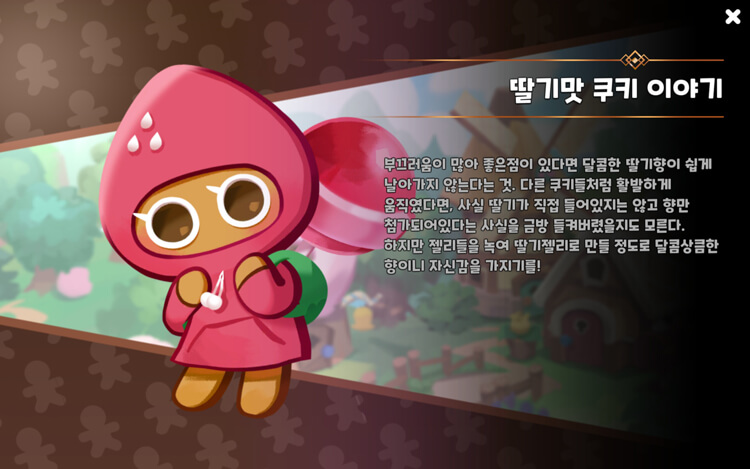 다른 쿠키들처럼 활발하게 움지였따면, 사실 딸기가 직접 들어있지는 않고 향만 첨가되어있다는 사실을 금방 들켜버렸을지도 모른다.