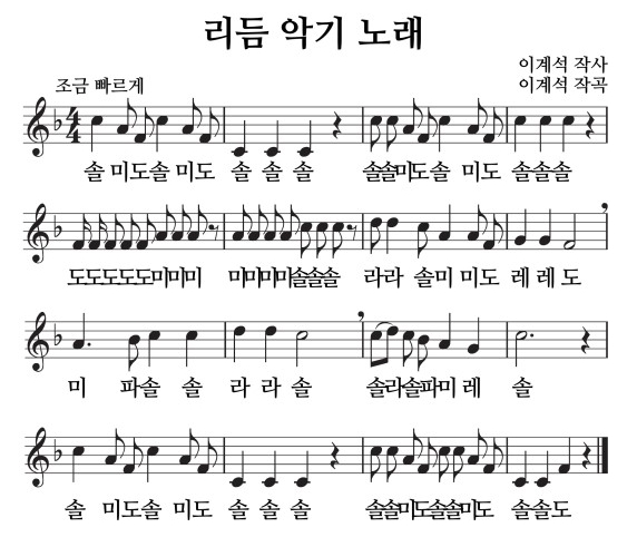 리듬 악기 노래 동요노래 동영상, 가사, 악보, 계이름