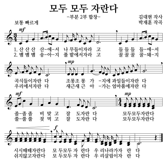 모두 모두 자란다 동요노래 동영상, 가사, 악보, 계이름