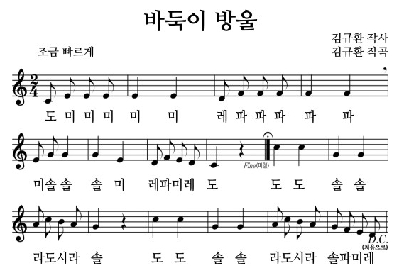 바둑이 방울 동요노래 동영상, 가사, 악보, 계이름
