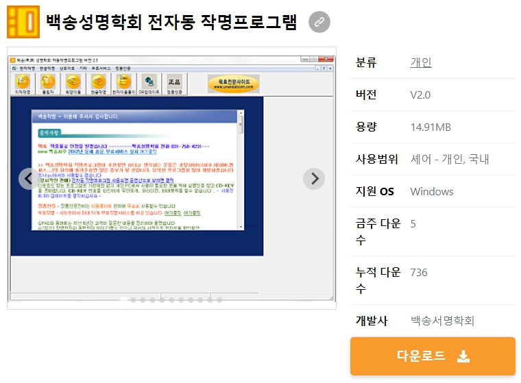 백송성명학회 전자동 작명프로그램 무료 다운로드