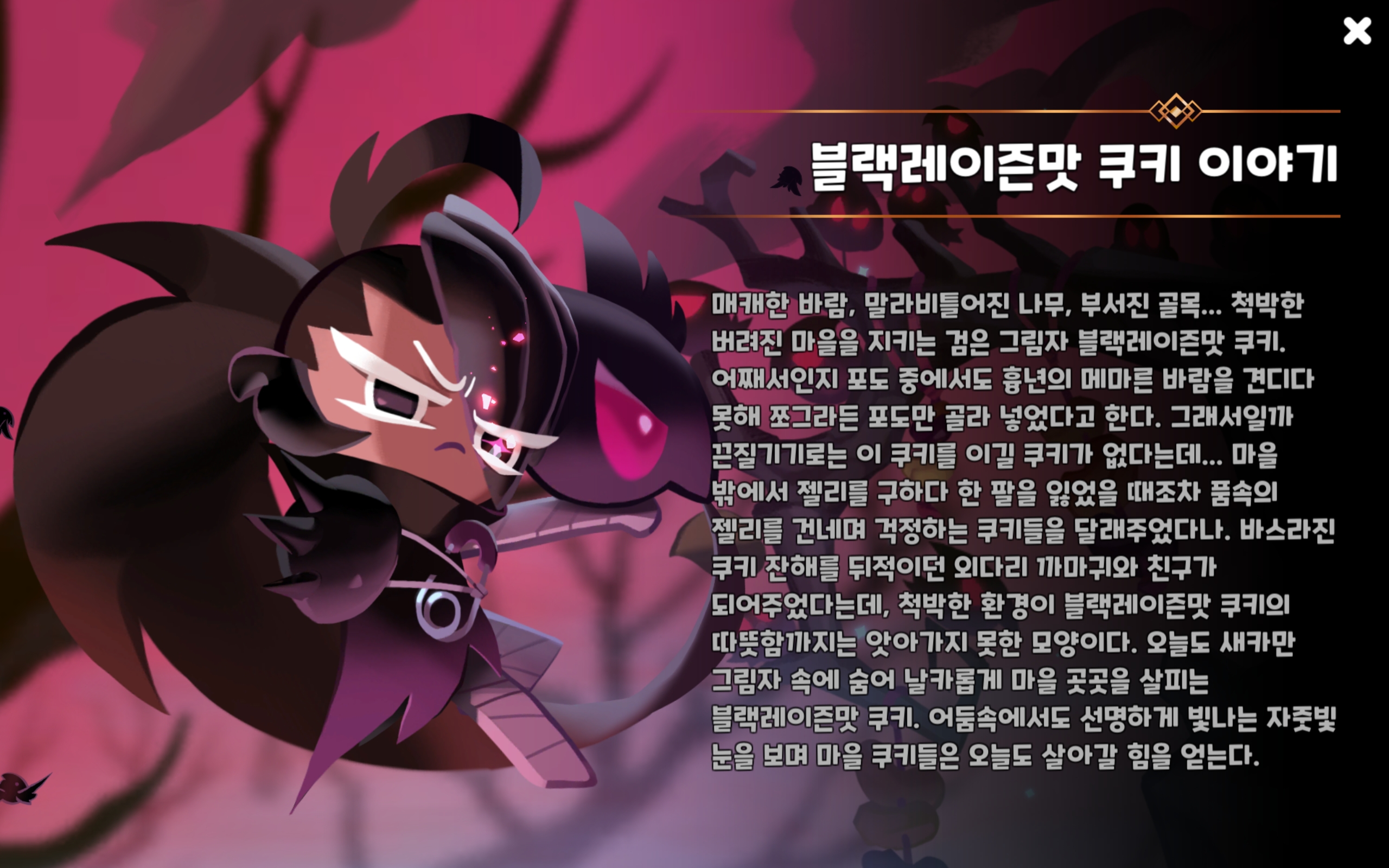 척박한 버려진 마을을 지키는 검은 그림자 블랙레이즌맛 쿠키.