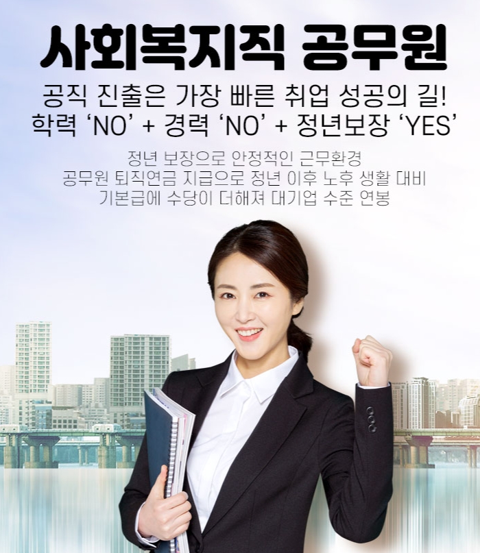 - 9급 공채 기준 사회복지사 3급 이상 자격증 소지자 & 18세 이상이면 응시 가능