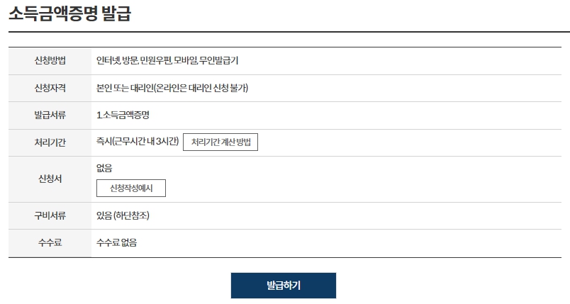소득금액 증명원 발급은 직전년도 귀속자료는 5월 1일 이후 발급이 가능합니다.