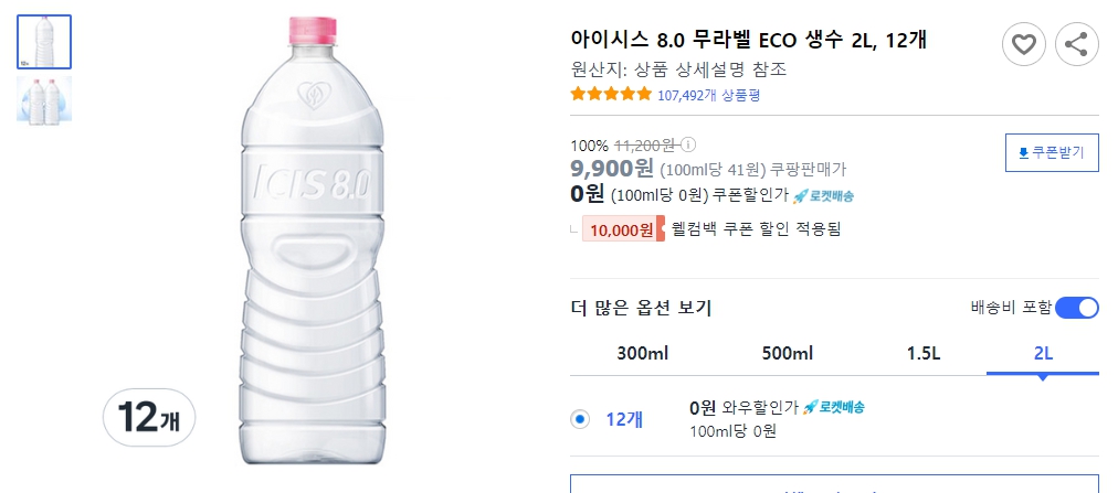 아이시스 8.0 무라벨 ECO 생수 2L, 12개 최저가 구매하기▶