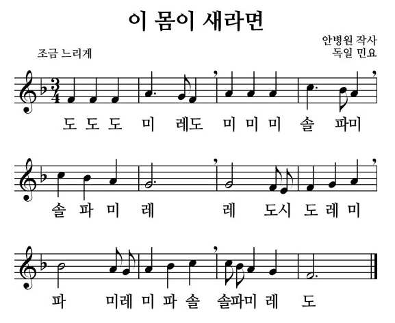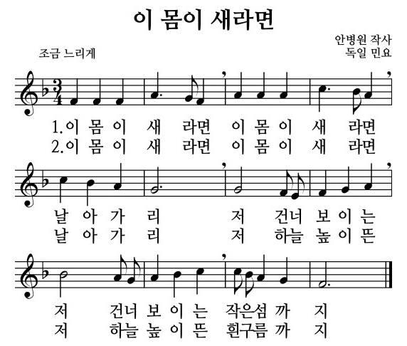 이 몸이 새라면 노래 동영상, 가사, 악보