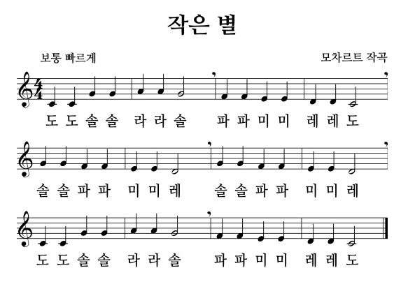 작은 별 노래 동영상, 가사, 악보, 계이름