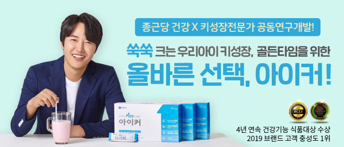 -2019년 새로워진 아이커를 만나보세요.키성장에 영양균형과 면역까지 생각해 종근당건강만의키성장 밸런스를 잡았습니다.