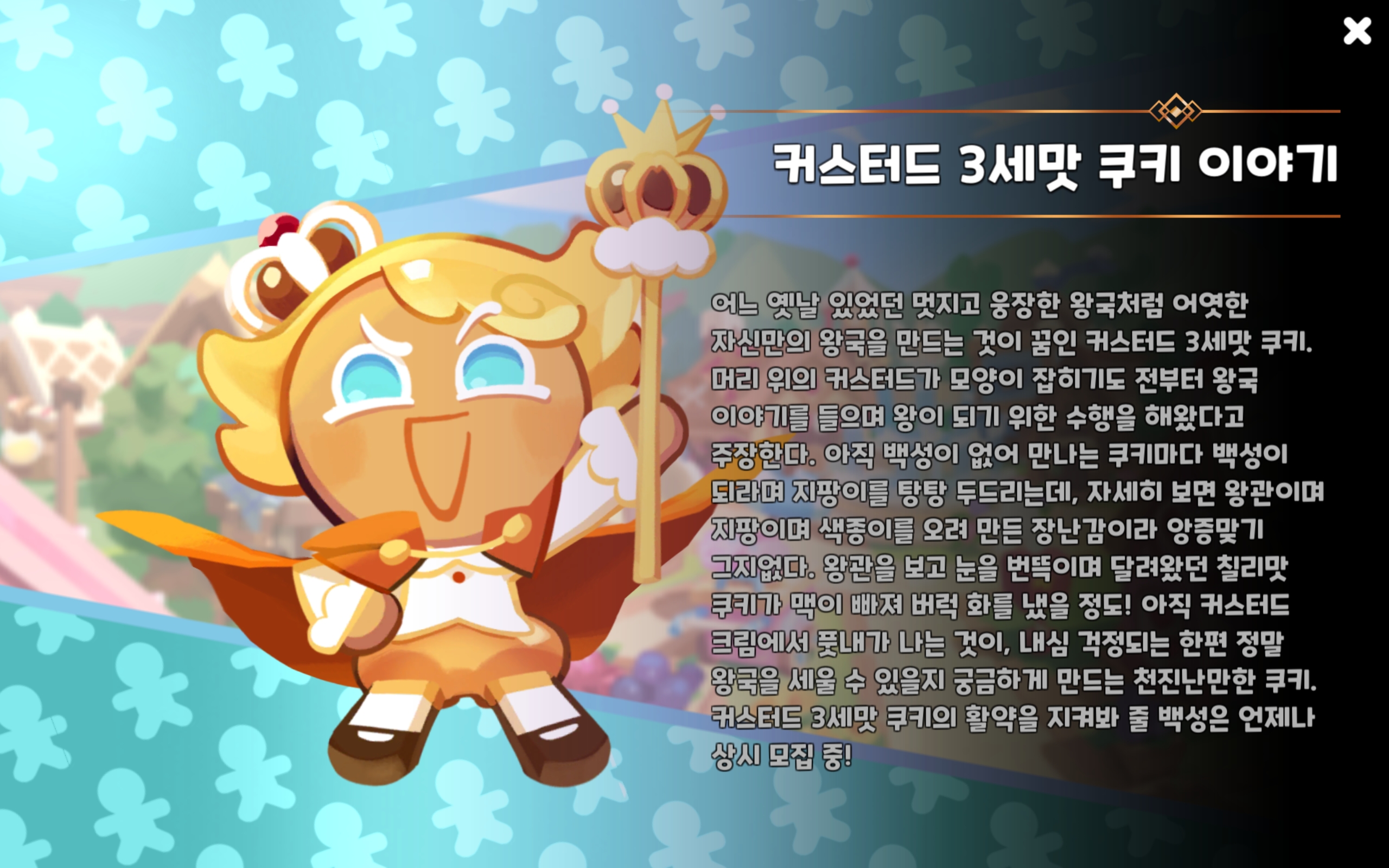 커스터드 3세맛 쿠키의 활약을 지켜봐 줄 백성은 언제나 상시 모집 중!