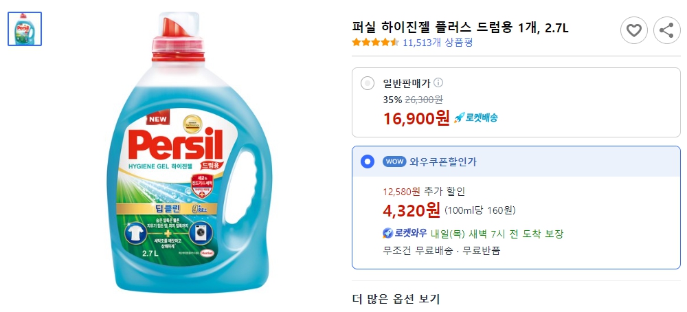 퍼실-하이진젤-플러스-드럼용-1개,-2.7L