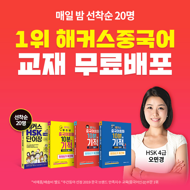 매일 선착순 20명! HSK 단어장 중국어회화 10분의 기적 워크북 무료로 쏜다!