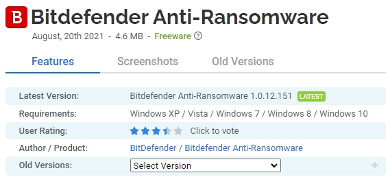 Bitdefender Anti-Ransomware 무료 다운로드▶