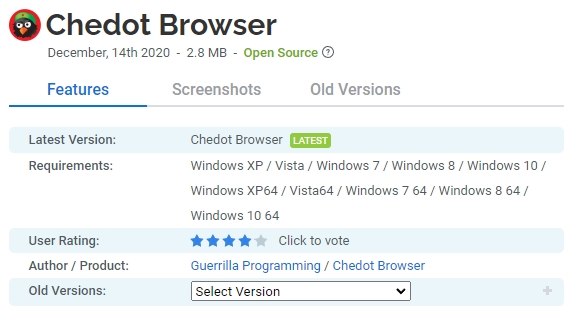오랫동안 Google Chrome은 다양하고 안정적인 Chromium 플랫폼에서 파생된 가장 인기 있는 브라우저였습니다. 그러나 여전히 존재하는 기반으로 하는 다른 브라우저 가 있습니다. 각각에는 고유한 도구와 기능이 있습니다. Chedot 브라우저는 이것의 좋은 예입니다. 우선 체 게바라 새를 닮은 멋진 아이콘이 있습니다. 인터넷을 서핑하는 기본 기능 외에도 브라우저에는 많은 고유한 도구도 있습니다. Chromium 기반 브라우저의 기능 번들 PC 용 Chromium 기반 브라우저와 함께 제공되는 흥미로운 기능 번들이 있습니다.