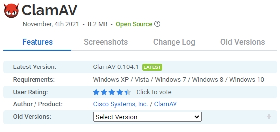 ClamAV는 트로이 목마 , 바이러스 , 맬웨어 및 기타 악성 위협을 탐지하기 위한 오픈 소스 바이러스 백신 엔진입니다. ClamAV는 이메일 스캐닝, 웹 스캐닝, 엔드포인트 보안 등 다양한 상황에서 사용되는 Windows PC용 오픈소스(GPL) 안티바이러스 소프트웨어입니다. 유연하고 확장 가능한 다중 스레드 데몬, 명령줄 스캐너 및 자동 데이터베이스 업데이트를 위한 고급 도구를 비롯한 다양한 유틸리티를 제공합니다. 여기에는 다중 스레드 스캐너 데몬, 주문형 파일 스캔을 위한 명령줄 유틸리티 및 자동 서명 업데이트가 포함됩니다.