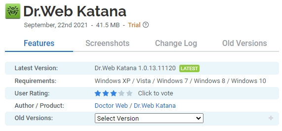 Dr.Web Katana는 고급 보호 기능을 제공하도록 설계된 일련의 차세대 Dr.Web 안티바이러스 기술로 구성되어 있습니다. 안티바이러스가 아직 인식하지 못하는 위협으로부터 컴퓨터를 보호합니다. Dr.Web Katana는 프로세스 내 악성 코드 활동을 모니터링하여 기밀 정보를 훔치거나 계정에서 돈을 이체하려는 시도를 적시에 방지합니다! 놀라운 PC용 안티 스파이웨어 소프트웨어!