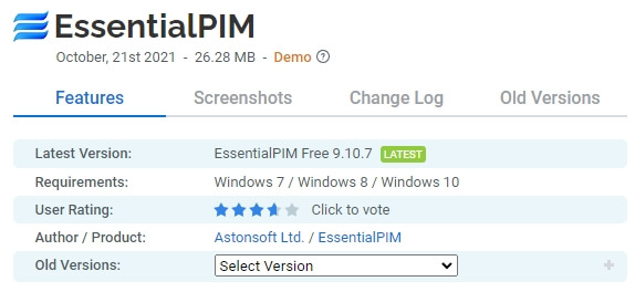 EssentialPIM 은 수상 경력에 빛나는 완전 무료 개인 정보 관리자로 약속, 할 일 목록, 메모, 이메일 메시지, 비밀번호 입력 및 연락처를 쉽게 제어할 수 있습니다. 그 외에도 EssentialPIM Free는 휴대성, 속도, 직관적인 인터페이스, 모든 정보를 Android 및 iOS 장치와 동기화하는 기능을 제공합니다. 대규모 사용자 커뮤니티의 지원을 받는 EssentialPIM Free는 모든 데스크톱 또는 USB 플래시 드라이브에서 최고의 개인 정보 관리 시스템으로 널리 인정받고 있습니다.