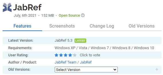 JabRef는 오픈 소스 참고 문헌 참조 관리자입니다. JabRef에서 사용하는 기본 파일 형식 은 표준 LaTeX 참고 문헌 형식인 BibTeX입니다. JabRef는 Java VM(버전 1.8 이상)에서 실행되며 Windows, Linux 및 macOS에서 똑같이 잘 작동합니다.