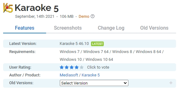 Karaoke 5는 손실 없이 라이브 실행을 위한 파일 midi Karaoke MP4, K5, MID, KAR, KFN, WMA, MP3, CDG, WAV, AVI, MPG, FLV, M4V, WMV 및 VS(가상 스코어)의 플레이어 및 관리자입니다. 시간. 빠른 시간에 텍스트를 베이스와 동기화할 수 있는 진화된 동기화 시스템으로 기본 가라오케 MP3, MIDI 및 MP4를 생성하거나 수정할 수 있습니다. 개인 전시 아티스트 및 재생 목록, Shoutcast 및 Icecast, 파일 K5 및 VS의 새로운 형식, 개인용 사전 설정 비디오가 있습니다. 지금 Windows PC용 가라오케 5를 다운로드하세요! 전문가와 초보자를 위한 최고의 PC 노래방 프로그램!