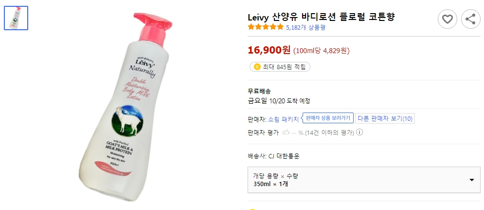 Leivy 산양유 바디로션 플로럴 코튼향 최저가 구매하기▶