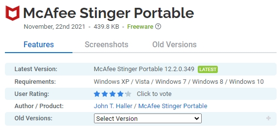 McAfee Stinger Portable 은 특정 바이러스를 탐지하고 제거하는 데 사용되는 독립 실행형 유틸리티입니다. 이것은 완전한 안티바이러스 보호를 대체하는 것이 아니라 감염된 시스템을 다룰 때 관리자와 사용자를 지원하는 특수 도구입니다. 각 Stinger 빌드에 추가된 새 서명 또는 향상된 서명에 대한 세부 정보는 Readme 세부 정보에 나열되어 있습니다.