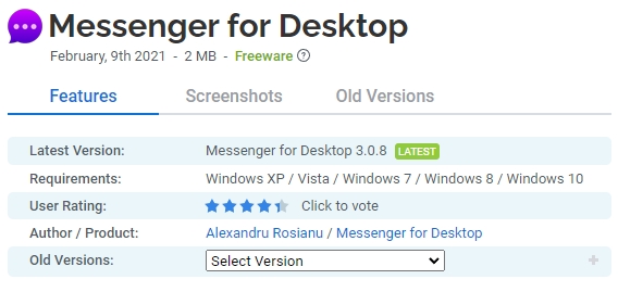Messenger for Desktop 은 Windows PC에서 Facebook의 메시징 서비스를 사용할 수 있게 해주는 비공식 클라이언트입니다. 어떤 OS에서도 방해받지 않고 채팅하세요. OS와 통합: OS 시작 시 실행, 기본 알림 및 사용자 정의 테마. PC용 메신저는 브라우저에 Facebook을 로드할 필요 없이 Facebook 채팅에 지속적으로 액세스 하려는 모든 사람에게 완벽한 소프트웨어입니다. 또한 공식 Facebook 앱인 PC용 Messenger를 다운로드할 수 있습니다.