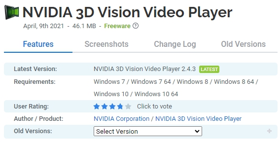 NVIDIA 3D Vision Video Player 무료 다운로드