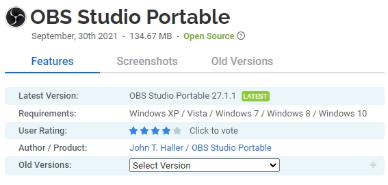 OBS Studio Portable 은 비디오 녹화 및 라이브 스트리밍을 위한 무료 오픈 소스 소프트웨어입니다. Windows, Mac 또는 Linux에서 빠르고 쉽게 다운로드하여 스트리밍을 시작하십시오. 이 소프트웨어를 사용하여 Windows PC 데스크톱에서 스트림을 제어하십시오! Windows용 OBS Studio 휴대용 오프라인 설치 프로그램을 다운로드합니다.