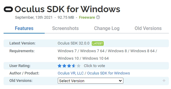 Oculus SDK for Windows 무료 다운로드▶