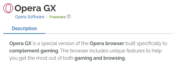 Opera GX는 위해 특별히 제작된 Opera 브라우저의 특별 버전입니다. 브라우저에는 게임과 탐색을 최대한 활용하는 데 도움이 되는 고유한 기능이 포함되어 있습니다.