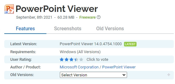 PowerPoint Viewer는 버전 97부터 2010년에 출시된 최신 버전의 Microsoft PowerPoint 앱 까지 모든 Windows 버전을 실행하는 사용자에게 Microsoft PowerPoint에서 만든 보기 파일에 대한 전체 액세스 권한을 제공하는 소규모 무료 소프트웨어입니다. PowerPoint 파일을 편집할 수는 없지만, 암호로 보호된 프레젠테이션 보기, 인쇄 및 액세스에 대한 전체 액세스 권한을 얻습니다.