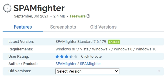 자주 사용하는 전자 메일 클라이언트에 사용할 수 있는 무료 스팸 필터를 찾고 있다면 더 이상 찾지 마십시오. SPAMfighter는 받은 편지함에서 스팸 및 피싱 이메일을 자동으로 제거하여 즉시 작업을 시작합니다. 이 프로그램은 또한 9백만 명이 넘는 사용자 커뮤니티에 의해 구동되며 스팸과의 전쟁에 기여할 수 있습니다.
