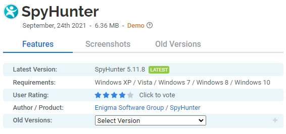 SpyHunter는 Windows PC용 최신 스파이웨어 , 트로이 목마, 루트킷, 랜섬 웨어 , 키로거 및 기타 유형의 악성 소프트웨어를 감지하고 제거합니다! SpyHunter는 일반 컴퓨터 사용자가 PC에서 악성 위협을 탐지하고 제거하는 데 도움을 주기 위해 설계된 강력하고 매우 효과적인 맬웨어 치료 도구입니다. 안티 스파이웨어 /안티바이러스 프로그램의 탐지를 피하기 위해 멀웨어가 계속 진화하고 정교해짐에 따라 첨단 기술로 대응하여 오늘날의 멀웨어 위협보다 한 발 앞서갑니다. 모든 사용자가 특정 요구 사항에 맞게 소프트웨어를 사용자 정의할 수 있도록 추가 사용자 정의 기능을 제공합니다.