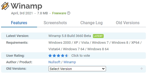 Winamp는 Nullsoft에서 만든 무료 멀티미디어 플레이어입니다. 그것은 수많은 오디오 및 비디오 형식을 지원합니다. 또한 전 세계에서 제작된 스트리밍 비디오 및 오디오 콘텐츠( 라이브 및 녹음)를 재생합니다. 이 앱은 다양한 오디오(MP3, OGG, AAC, WAV, MOD, XM, S3M, IT, MIDI 등) 및 비디오 유형(AVI, ASF, MPEG, NSV)의 재생을 지원합니다.