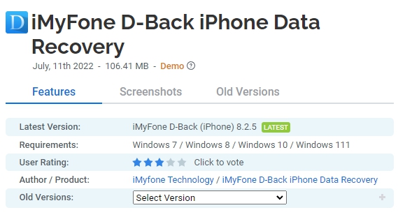 iMyFone D-Back iPhone Data Recovery 무료 다운로드