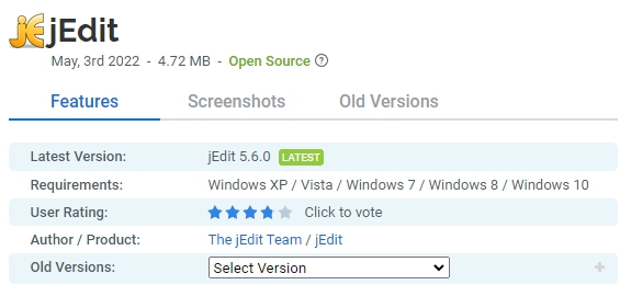 프로그램을 최대한 빠르고 쉽게 다운로드, 설치 및 설정하려면 빠른 시작 페이지로 이동하십시오. 이 도구는 기능과 사용 편의성 면에서 많은 값비싼 개발 도구를 능가하지만 GPL 2.0 조건에 따라 제공되는 전체 소스 코드와 함께 무료 소프트웨어로 출시됩니다. jEdit 코어 는 대규모 플러그인 컬렉션과 함께 전 세계 개발자 팀에서 유지 관리합니다. jEdit 무료 다운로드 Windows PC용 최신 버전. 도구의 전체 오프라인 설치 설치 프로그램입니다.